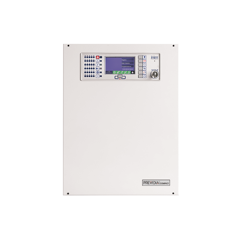 Capacité de boucles : 2 boucles - 240 adresses Voyant LED par zone : Oui Boîtier : Grand Alimentation : 4 A Emplacement pour batteries 17 Ah Gestion de l'extinction d'incendie : Oui GAMME PREVIDIA COMPACT - Installation facile : L'écran tactile graphique LCD couleur de 4,3 pouces, la simplicité et la rapidité de configuration et de maintenance du système, l'interface utilisateur intuitive et la programmabilité complète de tous les paramètres essentiels en font un appareil sans égal sur le marché. - Simple et intuitif pour l'utilisateur : Les centrales Previdia Compact gèrent les cartes graphiques et la vérification vidéo pour une gestion des urgences rapide et efficace, tout comme les versions modulaires Previdia Max. - Compact : Previdia Compact est disponible en deux tailles pour s'adapter à différents besoins d'installation : - Petit modèle avec une alimentation de 1,5 A et des batteries de 7 Ah - Grand modèle avec une alimentation de 4 A et des batteries de 17 Ah. - Mise en réseau : Les centrales Previdia Compact sont compatibles avec le réseau HORNET+ (jusqu'à 50 nœuds). Cette fonctionnalité permet Pour la création de réseaux intégrant les centrales Previdia Compact et Previdia Max, en veillant à ce que chaque nœud soit correctement dimensionné au sein du réseau. - Gestion d'un système d'extinction incendie : Les centrales Previdia Compact dotées de la fonction d'extinction incendie peuvent gérer un canal d'extinction. Associées à un réseau HORNET+, elles peuvent servir d'unités de contrôle satellites pour les centrales Previdia Max. - Connectivité permanente : Les centrales disposent d'une connexion Ethernet intégrée pour la connexion et la surveillance à distance. Elles gèrent également les protocoles SIA-IP et MODBUS sur TCP/IP. L'installation d'un module Previdia-C-DIAL (en option) permet à la centrale de gérer les communications vocales et numériques via une ligne téléphonique filaire et une ligne 3G, ainsi que d'enregistrer et de lire des messages vocaux et d'envoyer des SMS. Automatique. Trois façades différentes pour une lisibilité optimale : Les centrales sont disponibles en différents modèles avec trois façades différentes offrant une lisibilité claire et efficace pour une utilisation simplifiée. - Version standard. - Version avec LED d'état de zone. - Version avec LED d'état de zone et canal d'extinction. - Gestion d'un système d'extinction : Les centrales Previdia Compact avec fonction d'extinction permettent de gérer un canal d'extinction. Associées à un réseau HORNET+, elles peuvent servir d'unités de commande satellites pour les centrales Previdia Max.