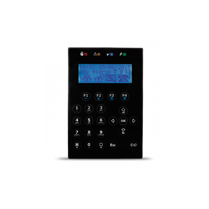 Clavier tactile sans boutons. Écran LCD 4 lignes (16 caractères par ligne) avec rétroéclairage programmable. Comprend 1 terminal d'entrée/sortie. Noir. Niveau 3