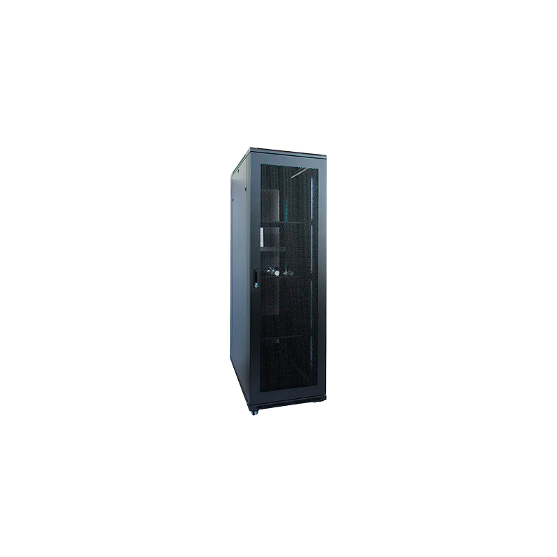Conforme aux T3047.2-92. Compatible avec les normes métriques ETSI et les normes internationales 19 pouces. La tôle d'acier laminée à froid a une épaisseur de 1,2 mm pour le cadre, de 2,0 mm pour le rail de montage (1,5 mm pour les armoires d'une profondeur de 600 mm), de 1,2 mm pour l'étagère fixe et de 1,2 mm pour le panneau latéral. Le verre fumé a une épaisseur de 5 mm.