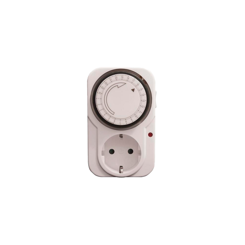 Interrupteur horaire journalier, prise Schuko / prise 16 A SPÉCIFICATIONS TECHNIQUES Alimentation 230 V ac 50/60 Hz Contacts 16 A Puissance commutable maximale 3500 VA Intervalle d'intervention minimal 15 min Commande MARCHE/MINUTERIE